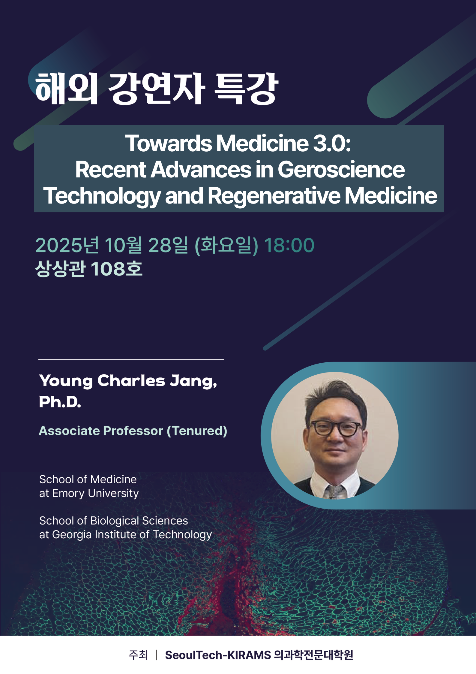 SeoulTech-KIRAMS 의과학대학원에서는 아래와 같이 해외 강연자 특강을 실시하오니 관심 있는 연구자들의 많은 참여 바랍니다.